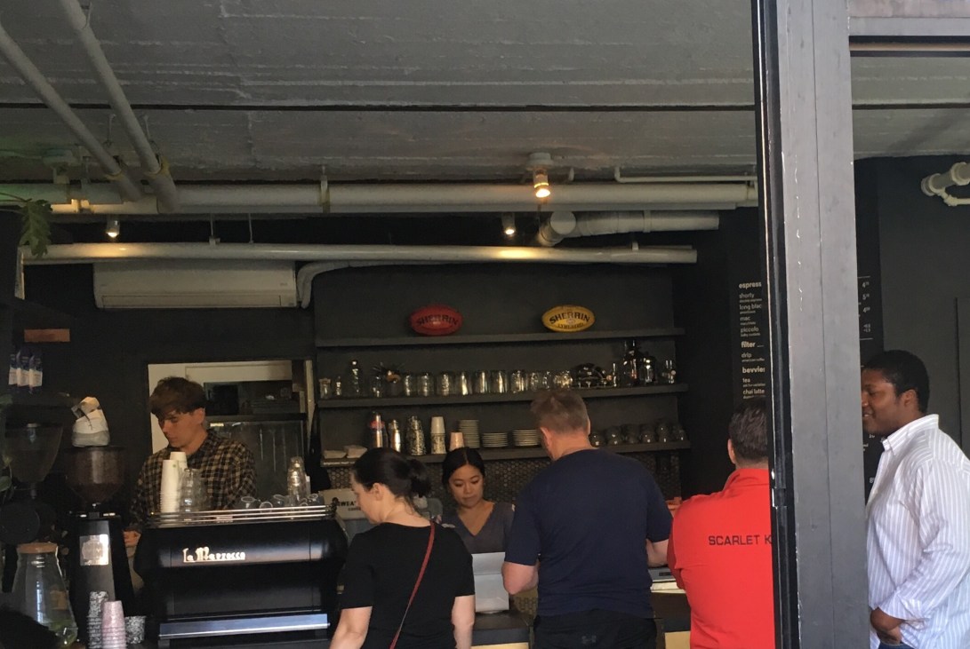 Once we were feeling human again, Deb had located a cafe in Williamsburg that she had read about and wanted to try. There was meant to be a decent running shop somewhere in Williamsburg as well so we grabbed the subway North. Williamsburg reminds me of Fitzroy/Collingwood – somewhat grungy and down-market but being gentrified and undergoing hipsterfication. There was even yarn bombing going on so it felt just like home. The cafe “Sweatshop” was a little place but had good strong coffee and nice Aussie touches – it is run by a couple of ex-pats. There were even a couple of Sherrins behind the counter.