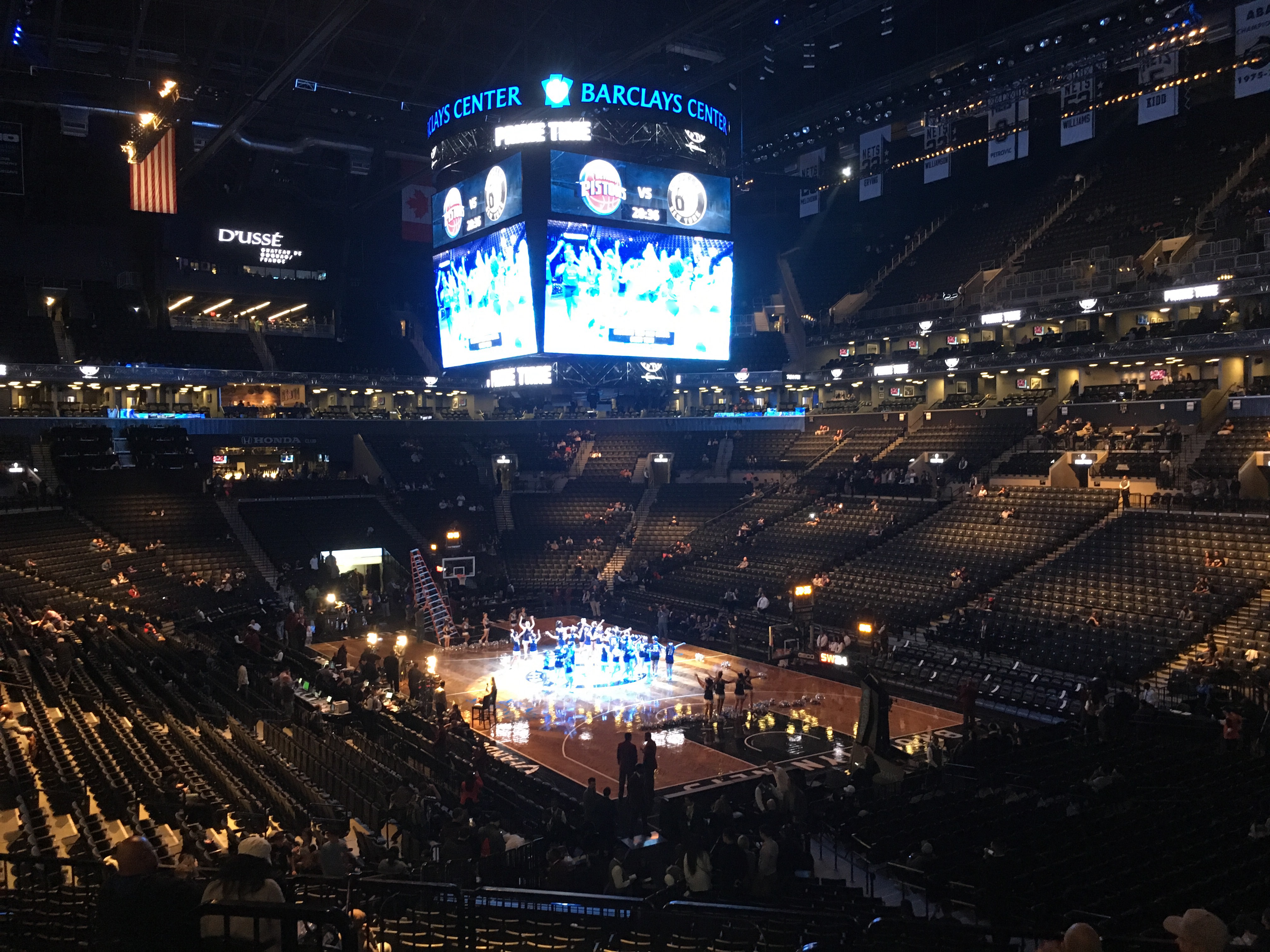 Deb soon returned and we set out to the local Barclays stadium, a 2km walk down 4th avenue. Here the Brooklyn Nets were taking on the Detroit Pistons, out first NBA game.